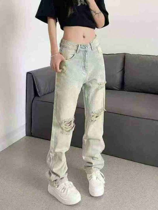 春秋新款高弹力洗水棉网红复古黄泥色牛仔直筒裤,独立...