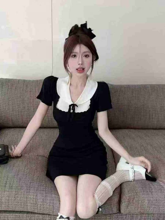 春夏季新款法式赫本风娃娃领纯欲辣妹针织连衣裙,独立包装,均码面料柔软舒适弹力大,150件,全清8.9元超低价秒杀!