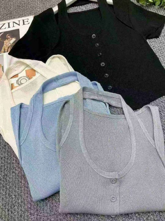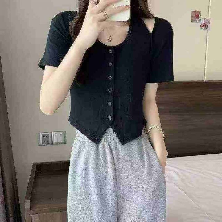 夏季新款弹力修身显瘦辣妹假两件挂脖短款针织短袖,独立包装,均码面料柔软舒适,780件,全清6.9元超低价秒杀!分货加一!白色为主!