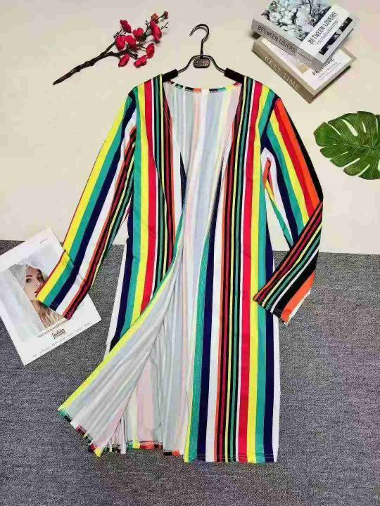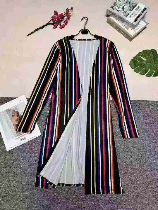 欧美女装时尚印花条纹长外套,数量:285件,码数:S-2XL,整款三色,品质好,有独立包装。