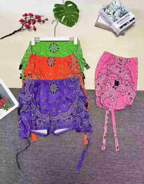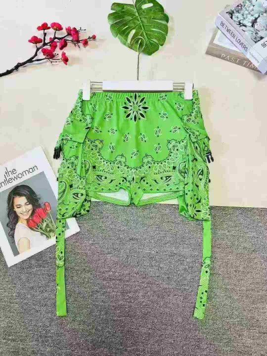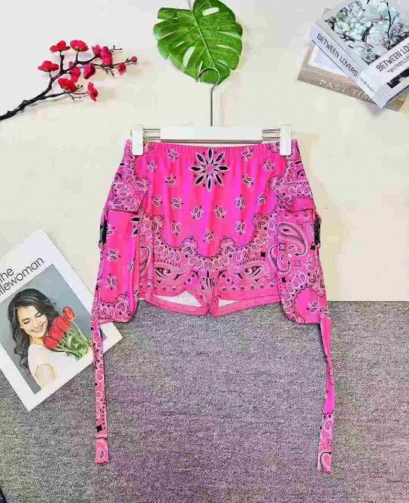 欧美时尚女装印花工装短裤 ,整款多色,数量300条左右,码数S-2XL,两侧边锁扣大口袋设计,品质好,有独立包装。