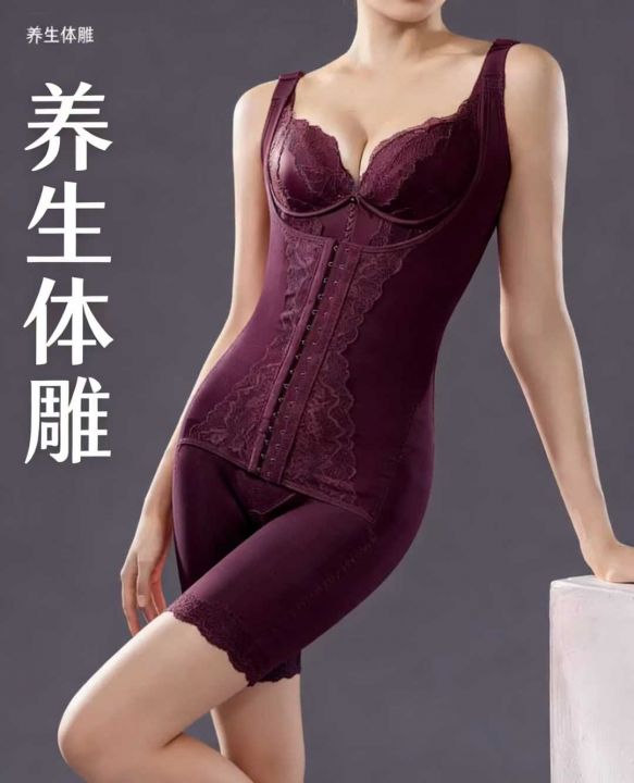 产后连体塑身衣中裤收腹开档免脱拉链美体托胸强压力连...