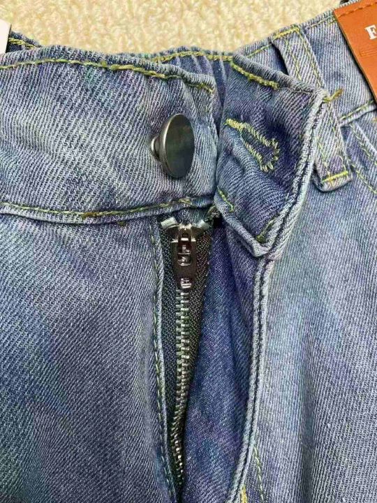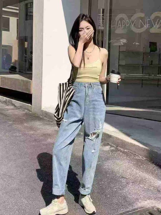春夏季新款微胖MM破洞设计款牛仔老爹哈伦裤,独立包装...