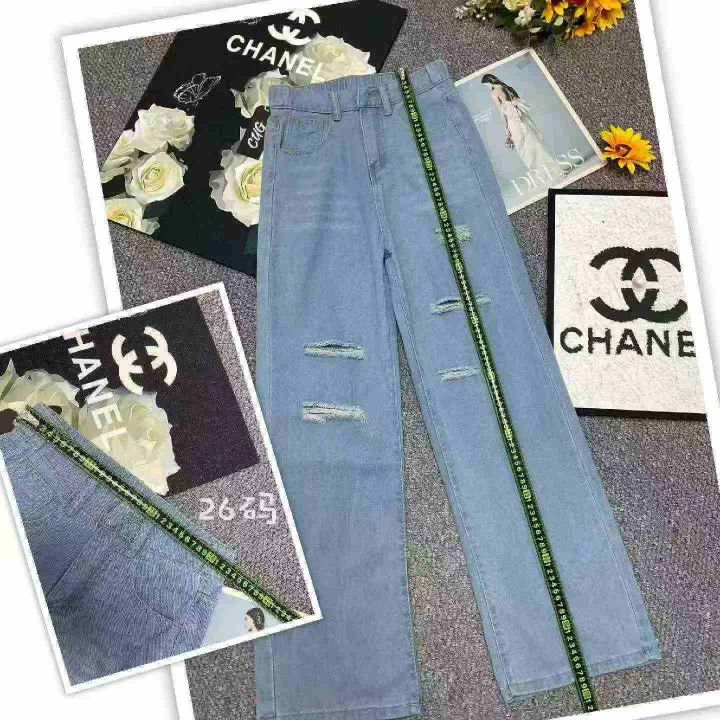 春夏季新款品牌原单宽松半松紧腰破洞设计款直筒阔腿牛仔裤,独立包装带吊牌,图片款,码数26--36码双码一首码,780件,全清9.9元超低价秒杀!分货加一!