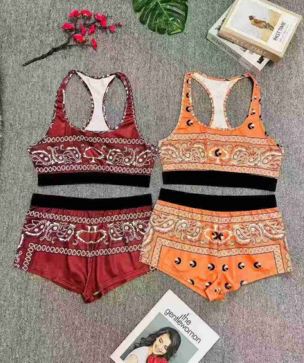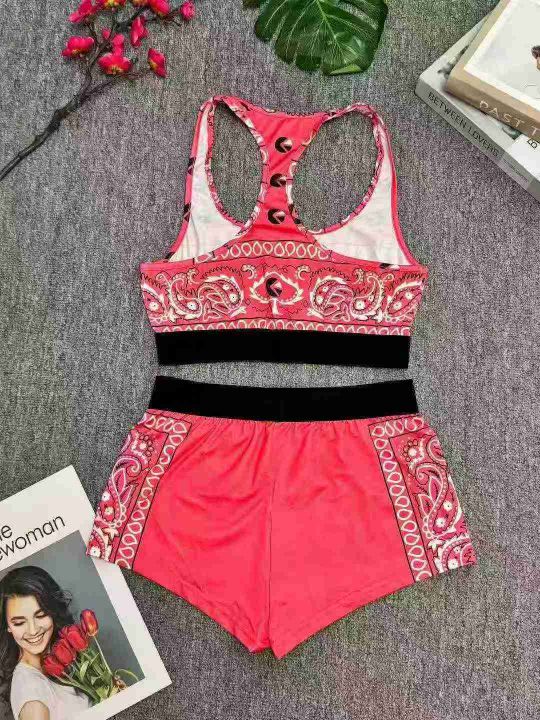 5.5清欧美跑步瑜伽健身印花背心短裤两件套,数量:100...