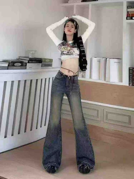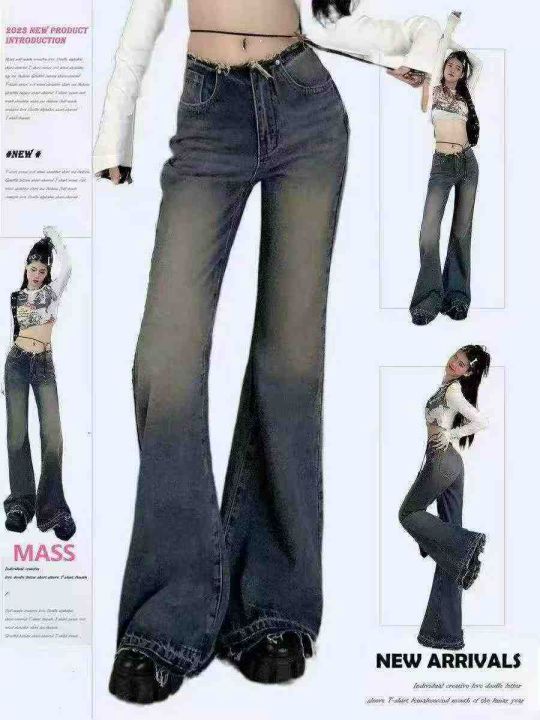 春秋新款辣妹复古阔腿喇叭牛仔裤,独立包装带吊牌,码...