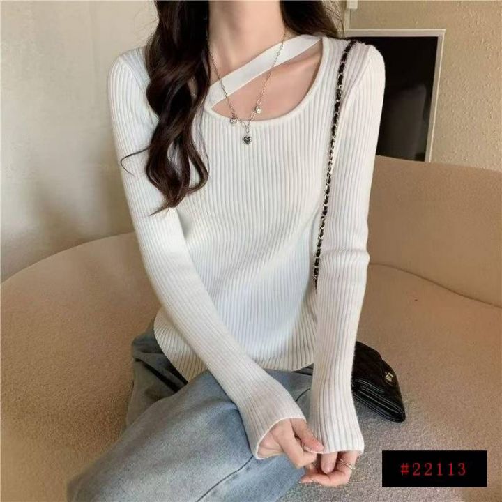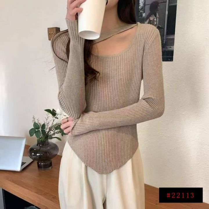 春秋新款网红设计感小众不规则洋气弹力修身显瘦坑条包芯纱套头毛衣,独立包...