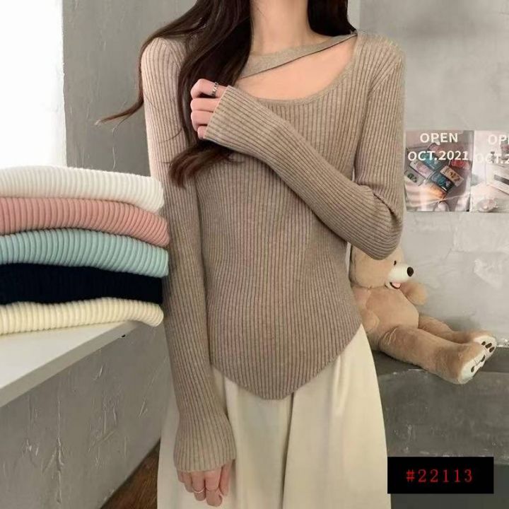 春秋新款网红设计感小众不规则洋气弹力修身显瘦坑条包芯纱套头毛衣,独立包装,均码面料软糯舒适,4200件,全清6.9元超低价秒杀!分货加一!@_@