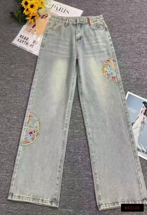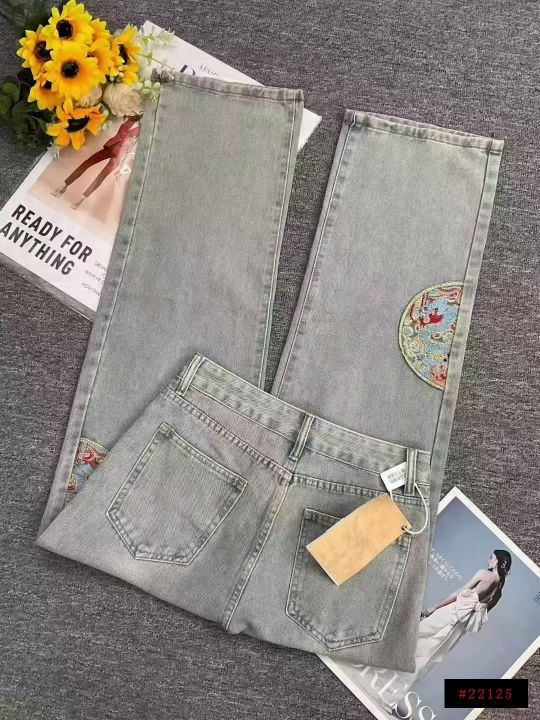 秋季新款洗水棉网红复古国风刺绣直筒阔腿牛仔长裤,独立包装带吊牌,码数XS--M码,580件左右,腾仓库,全清12.8元亏本处理!@_@