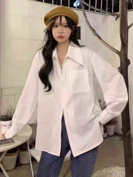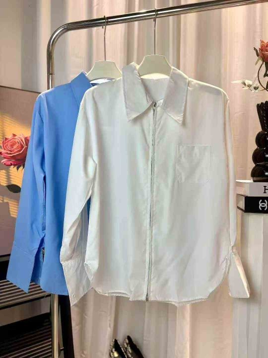 大码法式设计感双拉链POLO领长短袖衬衫女春夏薄款衬衣上衣外套 独立包装 码数1-4码(短袖131件长袖435件)全清5.8 分货加0.5