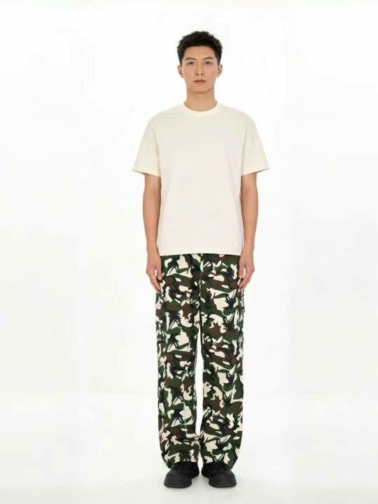 男款帅气迷彩休闲高腰松紧腰工装直筒裤长裤