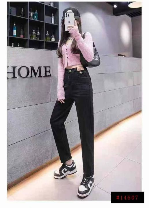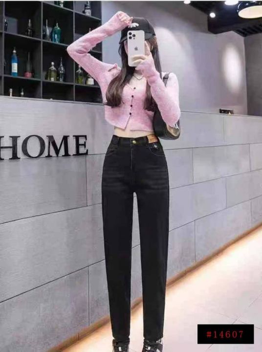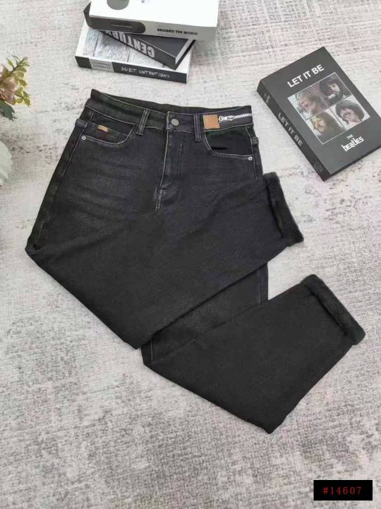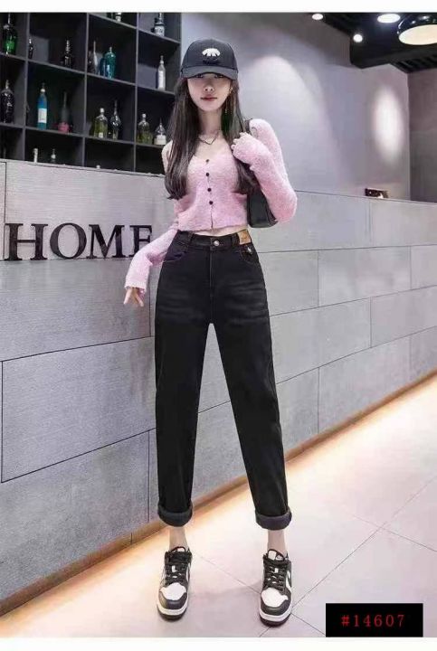 3️⃣天猫下架品牌女士加绒高腰哈伦牛仔裤萝卜老爹裤9...