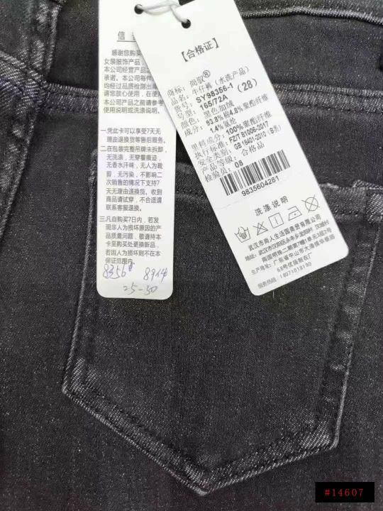 3️⃣天猫下架品牌女士加绒高腰哈伦牛仔裤萝卜老爹裤90条,码数25-30,独立包装带吊牌,中山货质量非常好,有酸味,有些拉链有氧化有些没有,当瑕疵处理