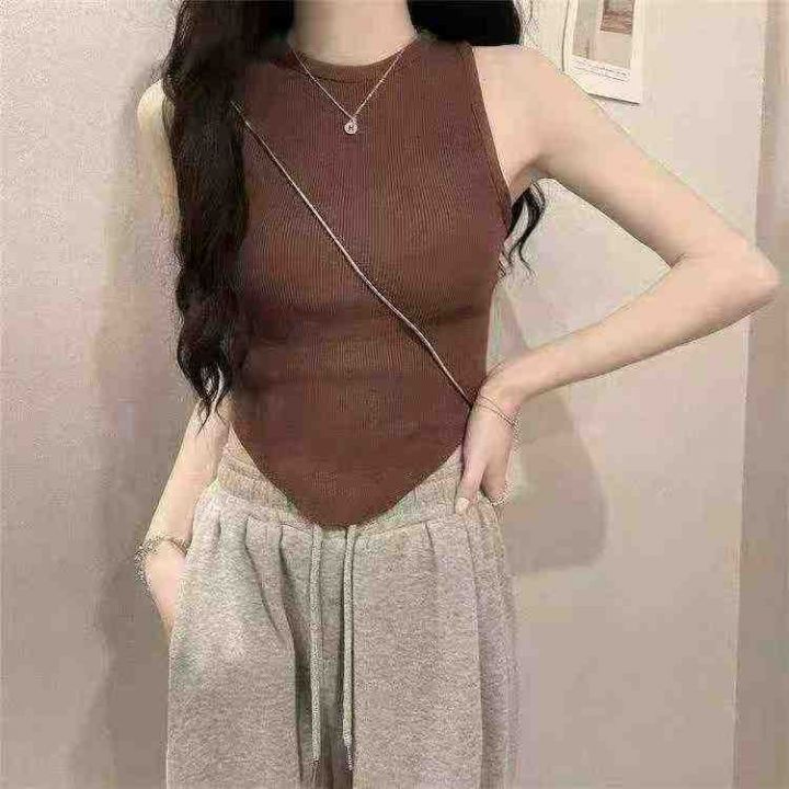 夏季新款不规则圆领弹力修身韩版百搭辣妹针织无袖背心...