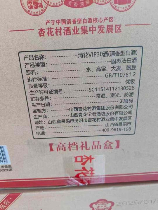 春节送礼太合适了!新到100箱清花VIP--30礼盒酒,全清私聊,10箱起发170元,一箱起发180元,一箱3提,一提2瓶,带手提袋,2026年生产,53度清香型白酒,山西杏花村集团出品!。 货号:29195