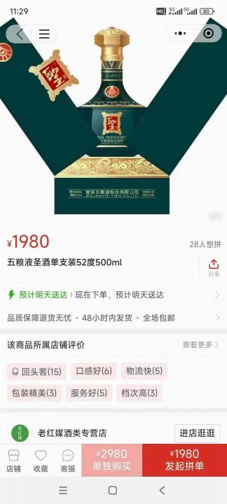 52度500ml,一箱6瓶,600元一箱,一箱起发,量大私聊,网上一瓶就卖1980元,。 货号:29195