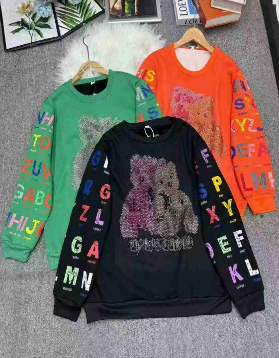 加绒加厚烫钻小熊洋气卫衣休闲卫衣,独立包装,宝宝绒,码数L-XXL(L胸围100厘米,能穿120斤内),大货黑色为主,数量1633件,分货加1,货号130#64