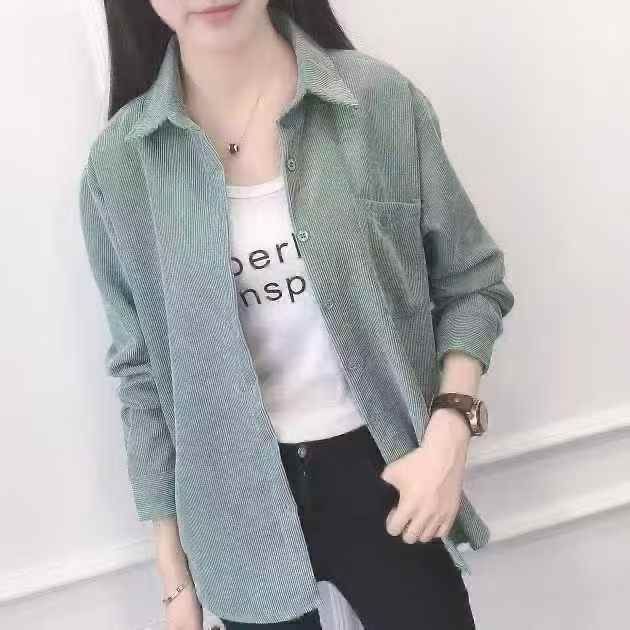 韩版宽松灯芯绒衬衫女2025新款长袖百搭口袋外套潮,独立包装,整款3色(绿...