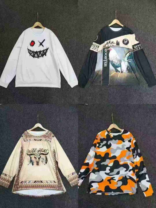 外贸3D印花长袖男女款卫衣T恤,大版宽松型后领包边 独立包装 码数S-5XL,数量16000件 全清2.9 分货加0.5