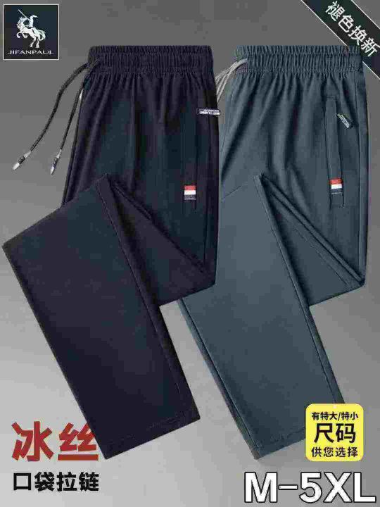 冰丝裤男士夏季薄款凉感休闲长裤子宽松弹力运动裤潮流百搭,束脚/平脚2款,M-5XL码,拉链口袋设计,2个面料,独立包装,货品干净,300件左右,6.8清,分货加1
