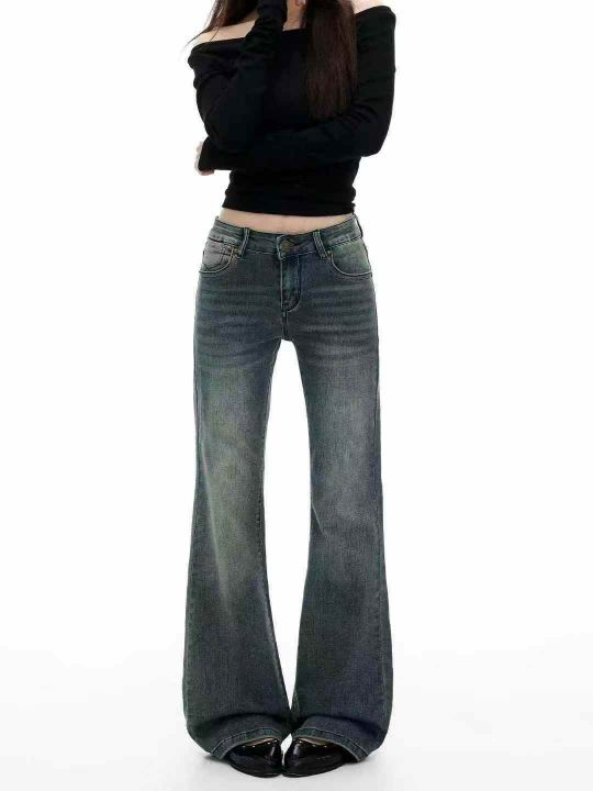 美式复古加绒喇叭辣妹显瘦百搭女牛仔裤,码数XS-XL,...
