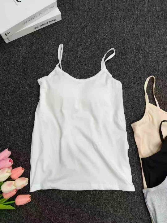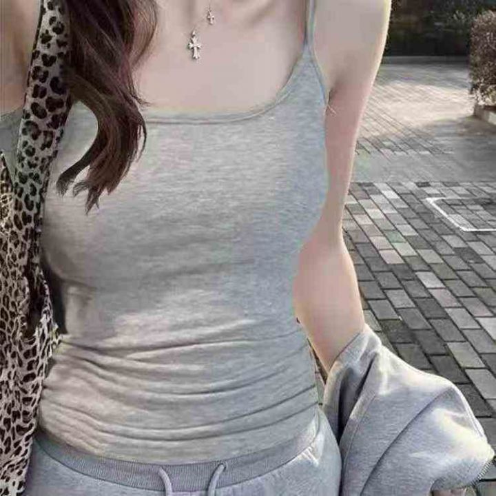 带胸垫纯色小吊带背心女夏纯欲少女外穿内搭修身美背打...