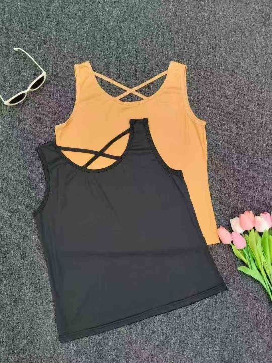 U领冰丝吊带女夏法式别致高级感交叉设计修身背心上衣...