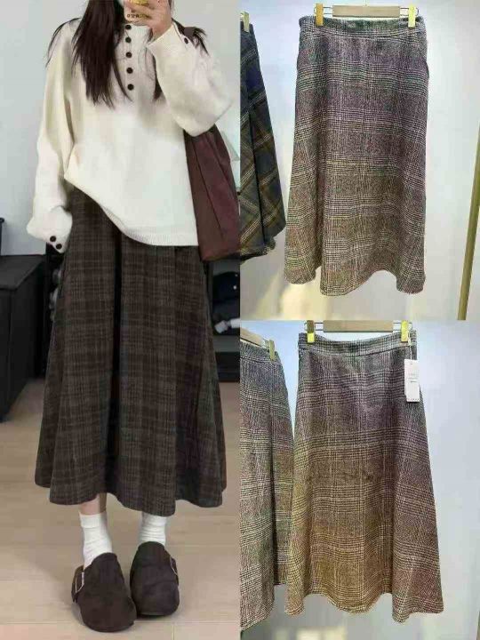 秋冬毛呢格子裙半身高腰a字裙半身长裙冬季裙,码数S-XXL,独立包装,货品干净,面料舒服柔软,620条全清8.8