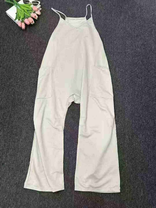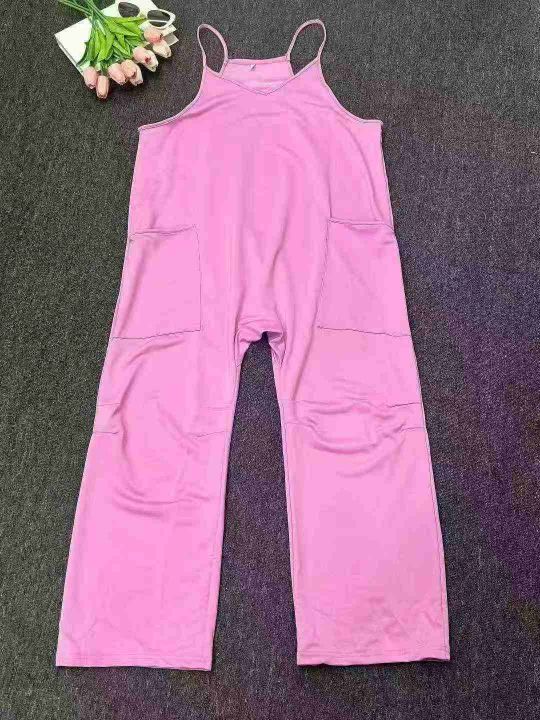 欧美大码V领胖MM浅绿色口袋宽松休闲吊带连体裤,独立包装,700件,S-2XL,全清6.8分货➕1