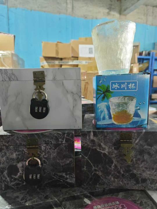 竹节玻璃杯 木盒带密码锁包装,14000多个,价格美丽 一瓶水钱...