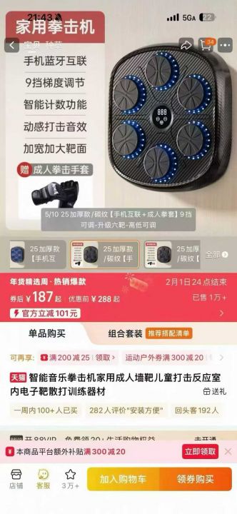 智能拳击连接蓝牙 带音乐 计数 9档 4000 套...