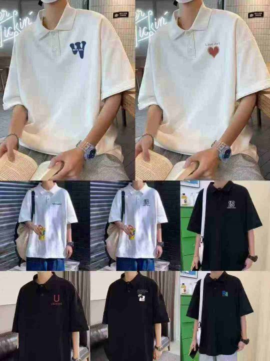☕️男女同款青少年翻领polo短袖T恤衫256件全清8.8元,码数M到5XL宽松版,小整图片系列风格款,独立包装,全部都是翻领,多花型 黑 白 杏色主打,潮牌机车风字母印花polo衫短袖t恤夏季翻领设计感宽松上衣[庆祝][庆祝][庆祝]
