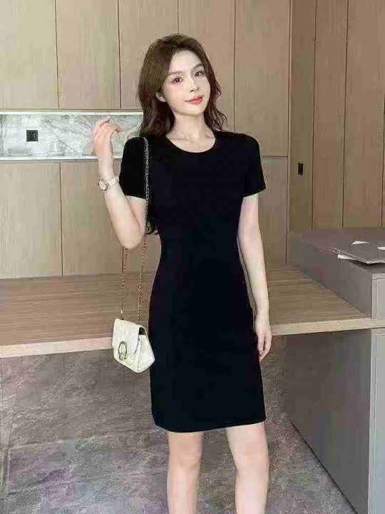 赫本风黑色连衣裙女新款夏季短袖T恤裙辣妹修身包臀裙 ...