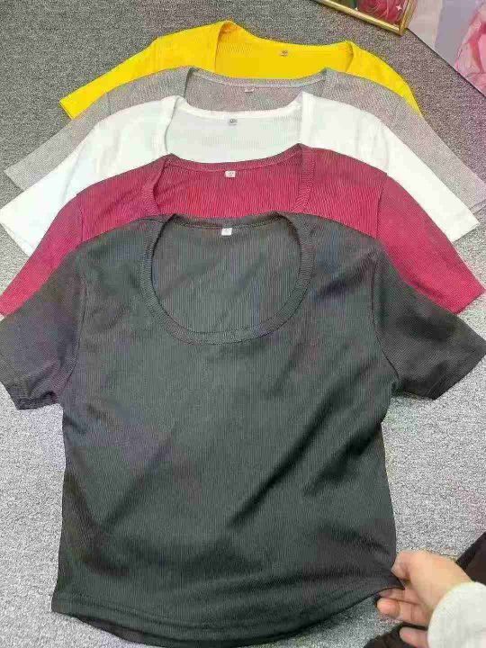 辣妹短袖T恤夏季正肩新款修身显瘦短款上衣,独立包装,货品干净,模特供参考,实拍为准,整款多色,弹力超大,红色只有10来件,1-4码,3400件左右,5.9清,分货加1