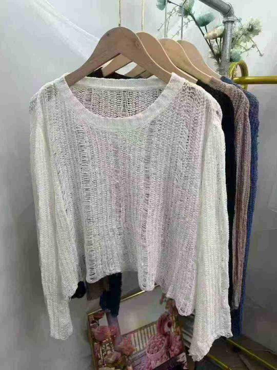 新款镂空上衣配吊带的小外搭韩版纯色宽松设计感长袖针织衫潮,整款4色,独立包装,货品干净,均码90穿到140斤,800件左右,6.8清,分货加1