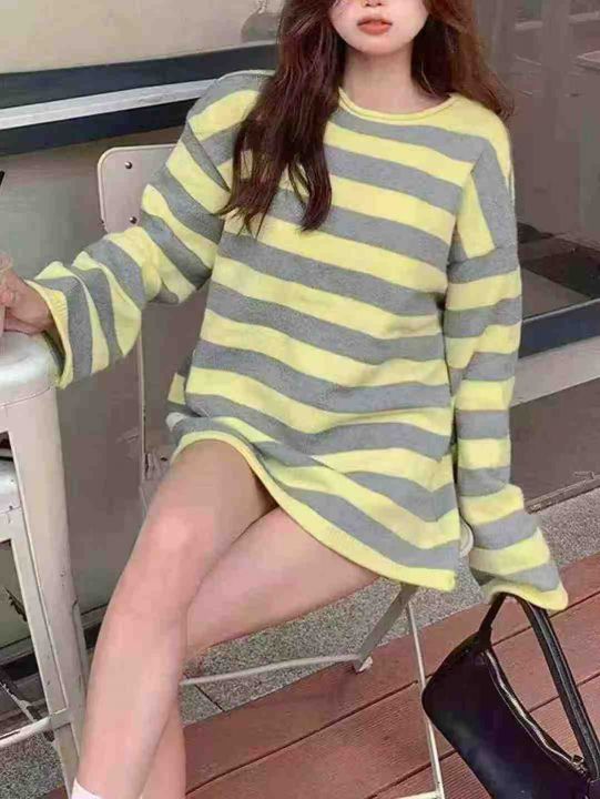 秋季新款宽松长款条纹针织衫,数量2980件,单款5色,均码宽松版型,独立包装,分货➕1随机配。