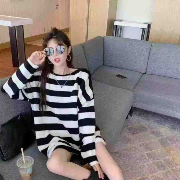 5.9元清秋季新款宽松长款条纹针织衫,数量2980件,单...