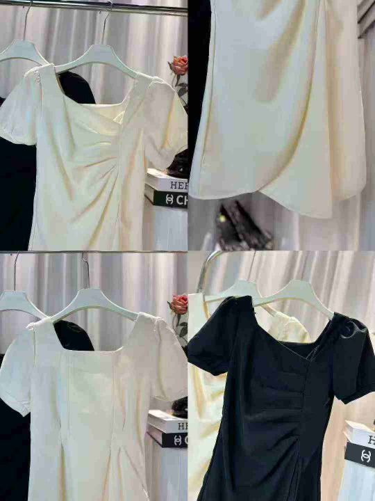 夏季新款不规则法式方领褶皱连衣裙清纯女装甜美气质中长款连衣裙 独立包装 码数1-4码 数量70件 全清6.9