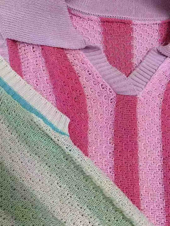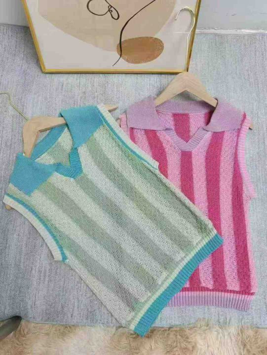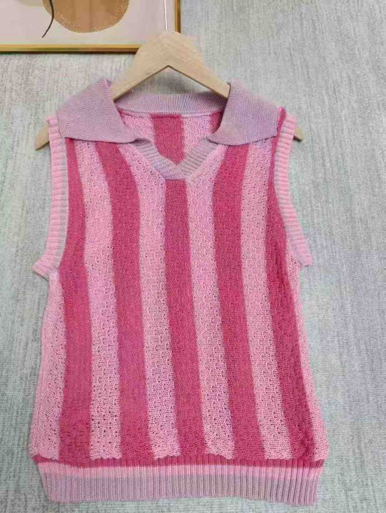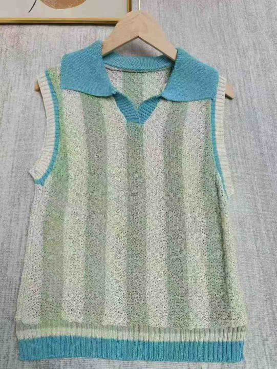 5.9全清,600件 分货+1,清爽撞色条纹Polo领镂空针织衫法式别致背心,整款2色,品质好 独立包装