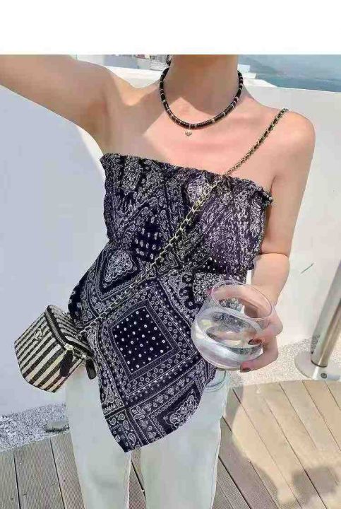 2.9全清,不分货,350件港风复古腰果花抹胸女夏季叠穿小众设计感无肩带网红打底辣妹上衣,独立包装。