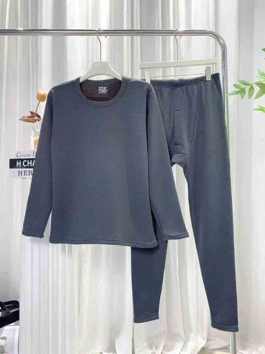 10000套雅鹿品牌男款圆领时尚加绒加厚德绒保暖套装,...