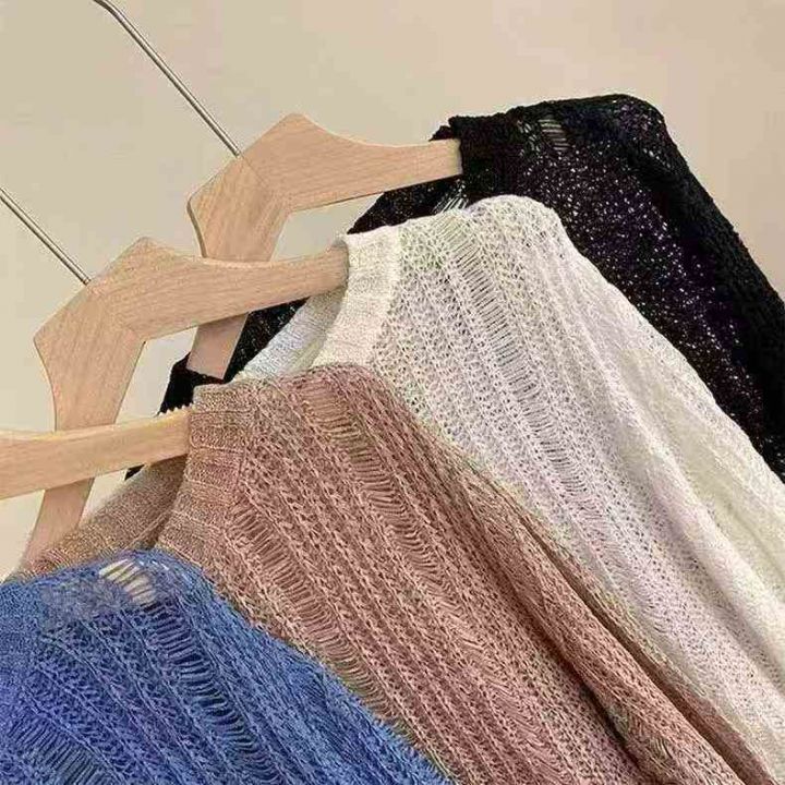 新款镂空上衣配吊带的小外搭韩版纯色宽松设计感长袖针...