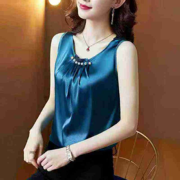 经典仿真丝绣花蕾丝拼接无袖背心.图片款式都单色1-4...