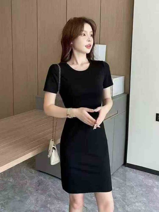 赫本风黑色连衣裙女新款夏季短袖T恤裙辣妹修身包臀裙 ...