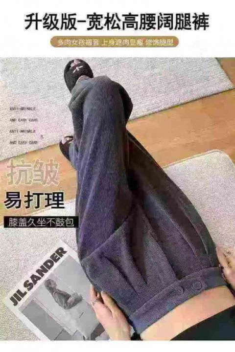 ☆838款,设计感少女靓妹女装灯芯绒双扣拉链款松紧腰高腰阔腿裤,905件,S-4XL,独立包装吊牌,全清7.8元,分货+0.5