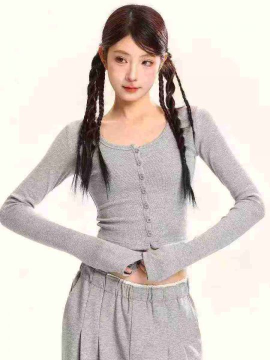 [月亮]:简约时尚小外套短款纽扣开衫上衣