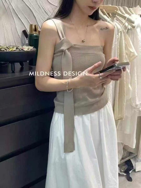 夏季新款纯欲风一字领单肩抹胸别致针织背心,独立包装,均码面料柔软舒适弹...
