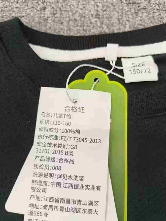 纯棉双面印花logo童装短袖 数量1500件左右 尺码110--160 整款两个颜色 纯棉面料后领包边 独立包装带吊牌