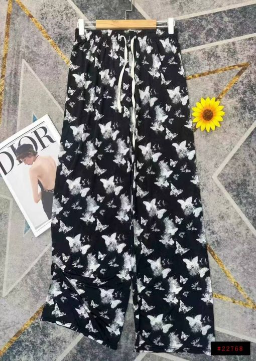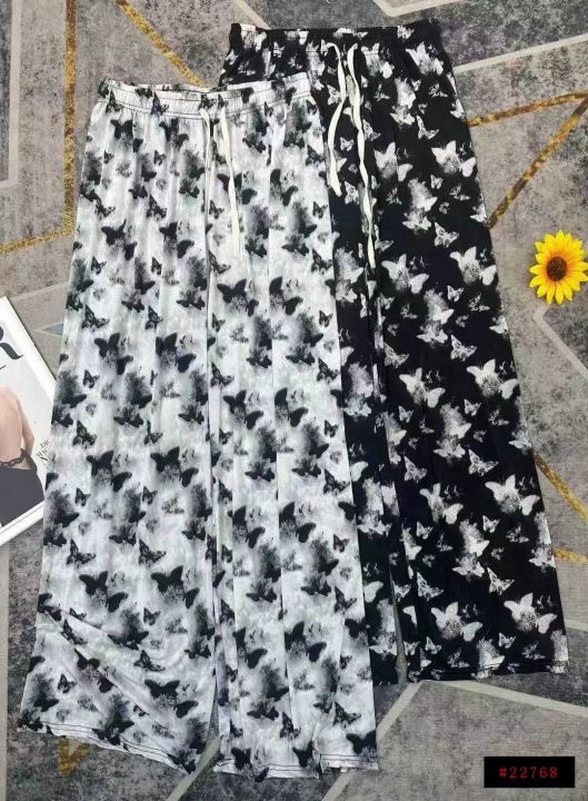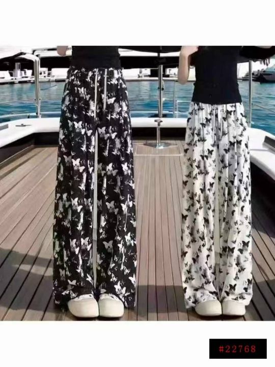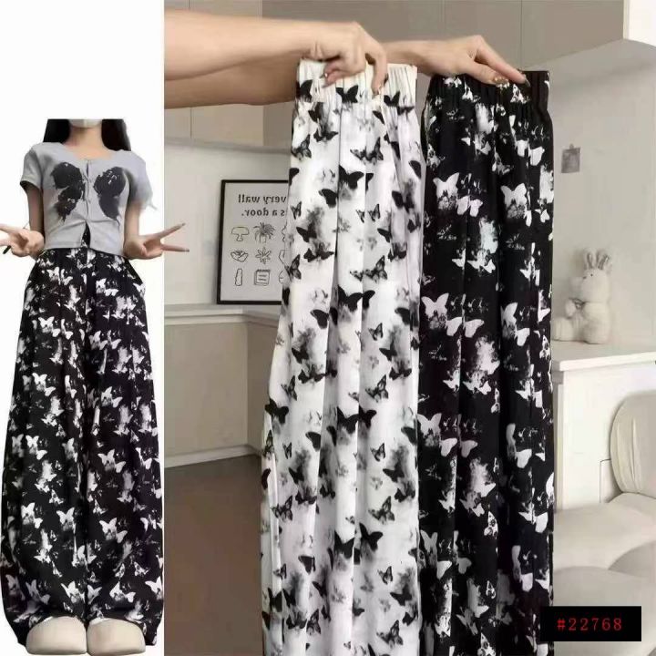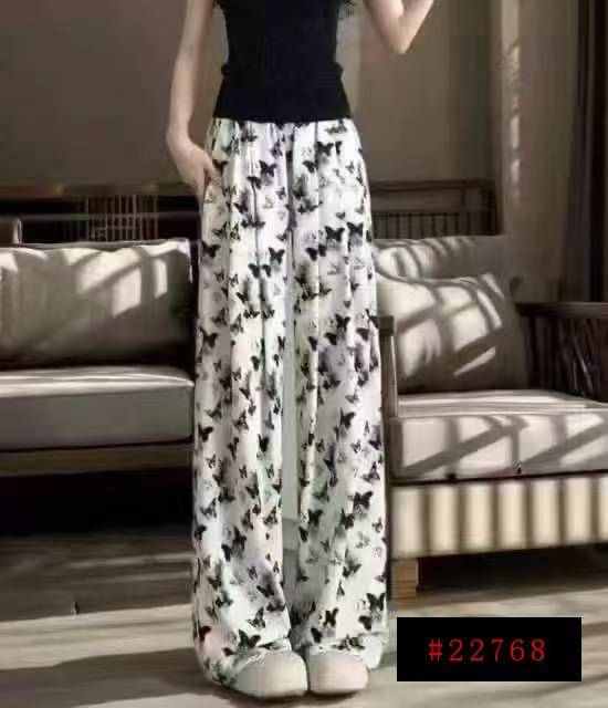 下身阔腿长裤[太阳]全清8.8,2000件,均码,新中式水墨蝴蝶冰丝阔腿裤夏季国风裤女薄款休闲垂感直筒拖地裤子,垂感好,面料柔软舒适,夏天穿它凉感十足[哇],松紧腰不挑人,全部全新独立包装,品质,200件起分货[太阳]9.8@_@