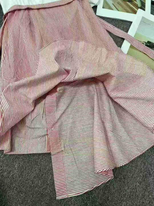 ☕️韩版小性感一字领露肩拼色吊带裙条纹短袖连衣裙33...